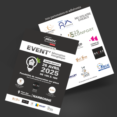 L’Association Rénov’Conseil souhaite faire un son premier évènement portant sur les bonnes pratiques lors de projets sur la rénovation énergétiques. Évènement prévu fin avril, nous avons donc 5 semaines pour tout préparer et tout lancer en impression. .