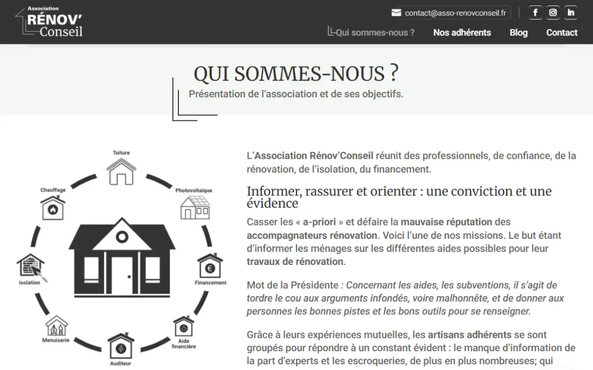 L’Association Rénov’Conseil est une association bénévole, basée à Narbonne, dont le but principal est d’orienter, rassurer et informer toute personne souhaitant effectuer des travaux de rénovation énergétique.